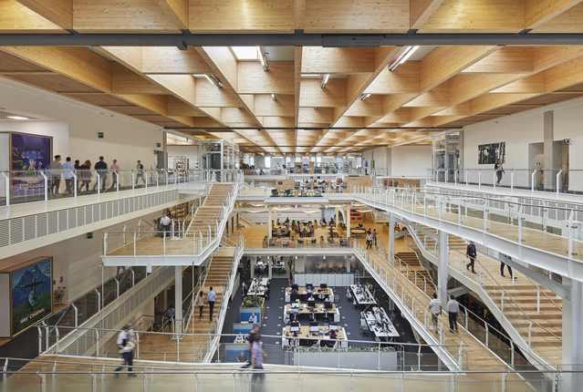 BCO said: “Sky has created a genuinely and hugely dynamic working environment for its team in Sky Central in Isleworth, according to the BCO judges. Housed beneath a spectacular and light enhancing structural timber ceiling, the judges said the large floor plates break down into a series of spaces that are varied, individual and yet unified. They added that despite housing up to 3,400 people, the overarching sense is one of calm, productive collaboration and creativity that is entirely suited to the nature of Sky’s media-led business.”
