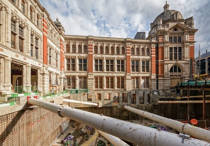 The 6,360m² Exhibition Road scheme is an engineering feat with extraordinarily challenging structural works, carried out by steelwork contractor Bourne, main contractor Wates and engineers Arup. The project and its gallery 18m below the surface necessitated piling 50m down within 1m of a Grade I Listed building and underpinning a wing of the V&A and its collection. For the duration of the project, the entire Museum remained fully operational and accessible to the public.
